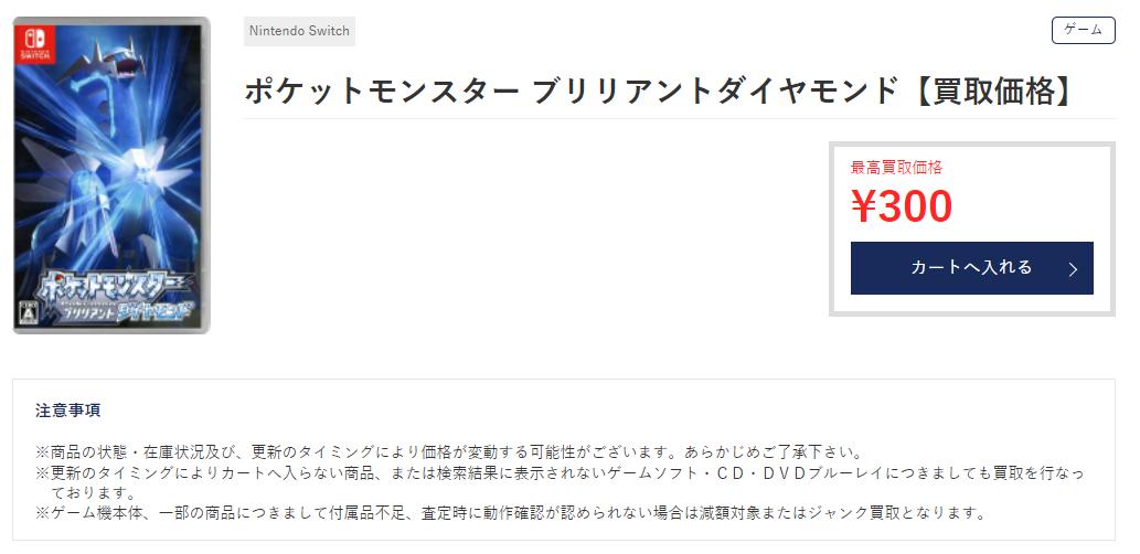 ただ、やりこみ要素の少なさは無視できず、ゲオでの買取価格がなんと300円に到達した(シャイニングパールも同じ値段)。