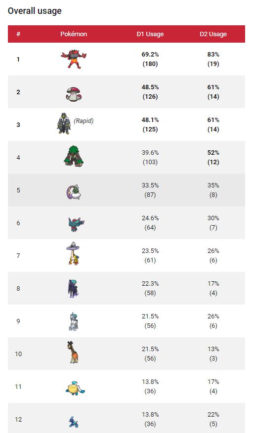1位はやはりガオガエンがランクイン。禁伝で一番多かったのはなんと黒バドレックスで8位だった。次に多いのが白バドレックスで9位、そしてまさかのテラパゴスが12位だった。