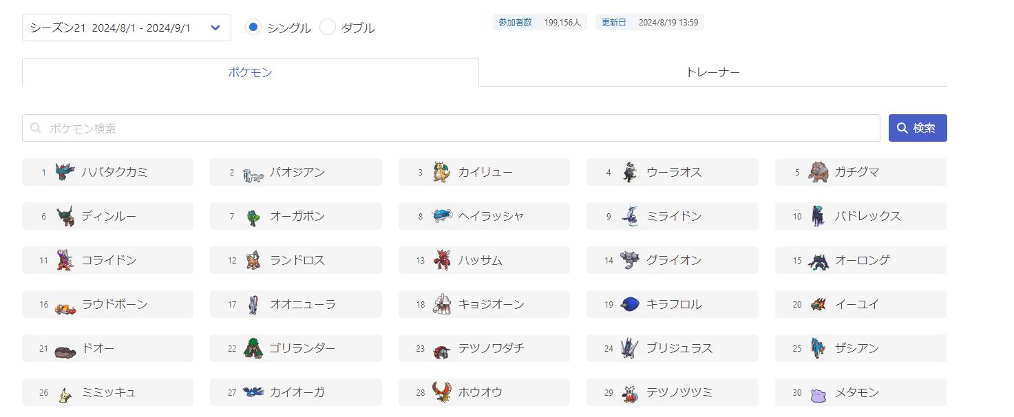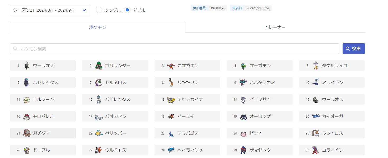 一方、ウーラオスはレギュレーションDの時点でメタが多く、DLC解禁組はウーラオスに強いポケモンたちがこぞって使用率上位にランクインしたが、これらをすべて破壊しトップにいる。