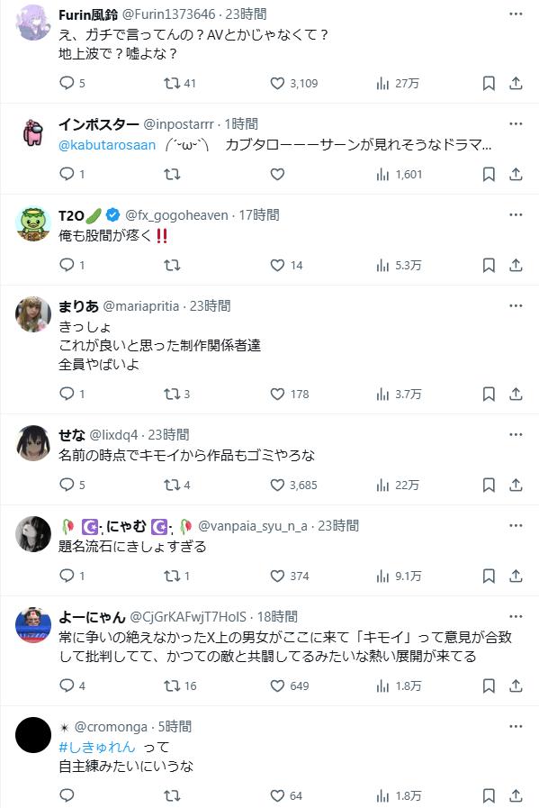 子宮恋愛の告知ポストのリプ欄が大荒れだが、放送前にこれだけ話題になっているので、マーケティングでは成功だ。こういうのも狙っているのかもしれない。
