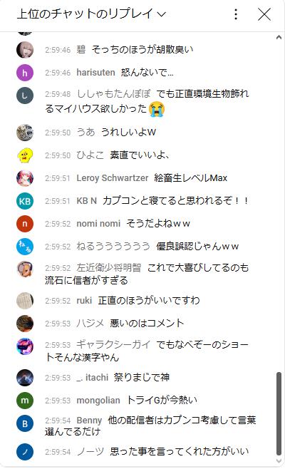 これらが「アップデート内容に対して軽率で配慮を欠いた発言」なのだろうか。また「私のネガティブな発言によって、不快な思いをされた視聴者の皆様」とつづっているが、チャット欄はなべぞーに同調する内容がほとんどだった。