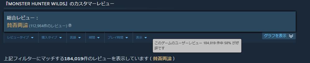 そういった意味では、もっとも信用できるのはSteamレビューだろう。ワイルズはSteamの購入者が圧倒的に多く、レビュー欄には良い所も悪い所も書かれている。これを参考に購入するか決めるのがベストだ。