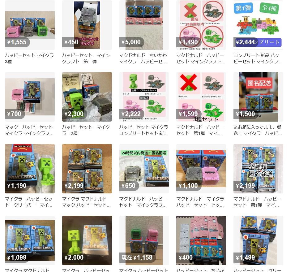 ▼マイクラハッピーセット、メルカリで転売されるも全く売れず