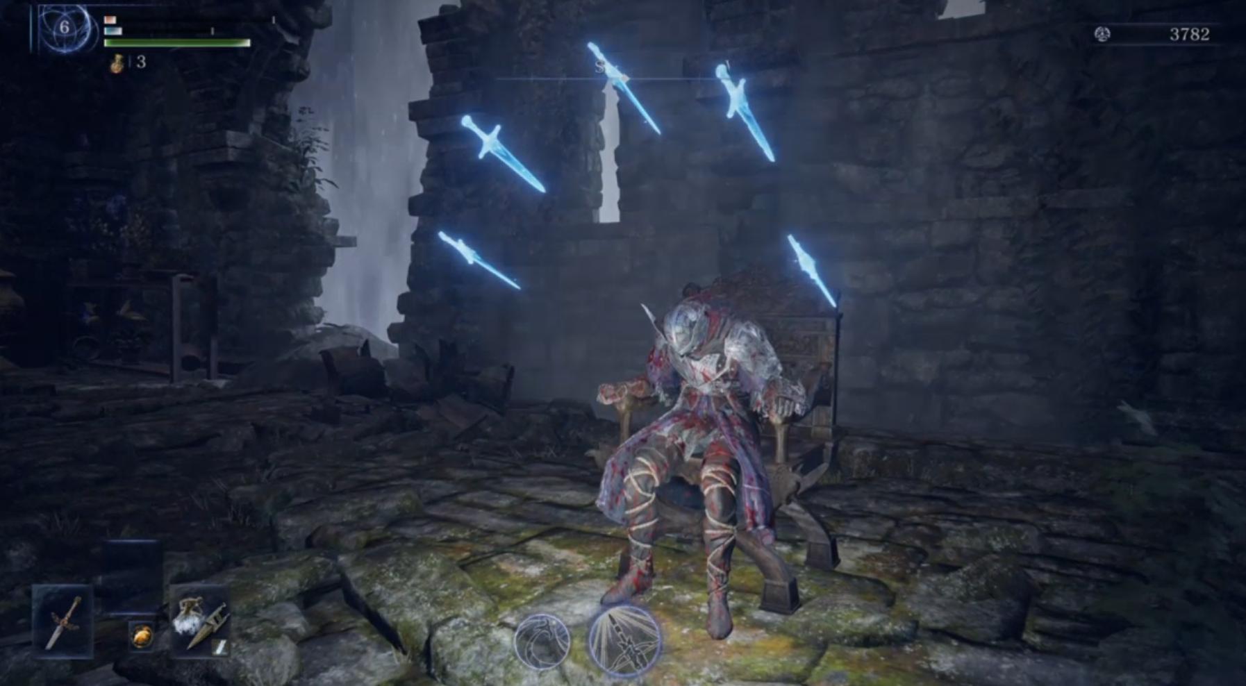 輝剣の円陣は現在の本編RTAでよく使われている。4本の輝剣はたとえ全弾ヒットしても威力はショボいが、かなりの強靭削りを持っており、簡単に体勢崩しできた。お手軽強靭削りにも関わらず、消費FPはわずか10と低く、コスパでも優れる。