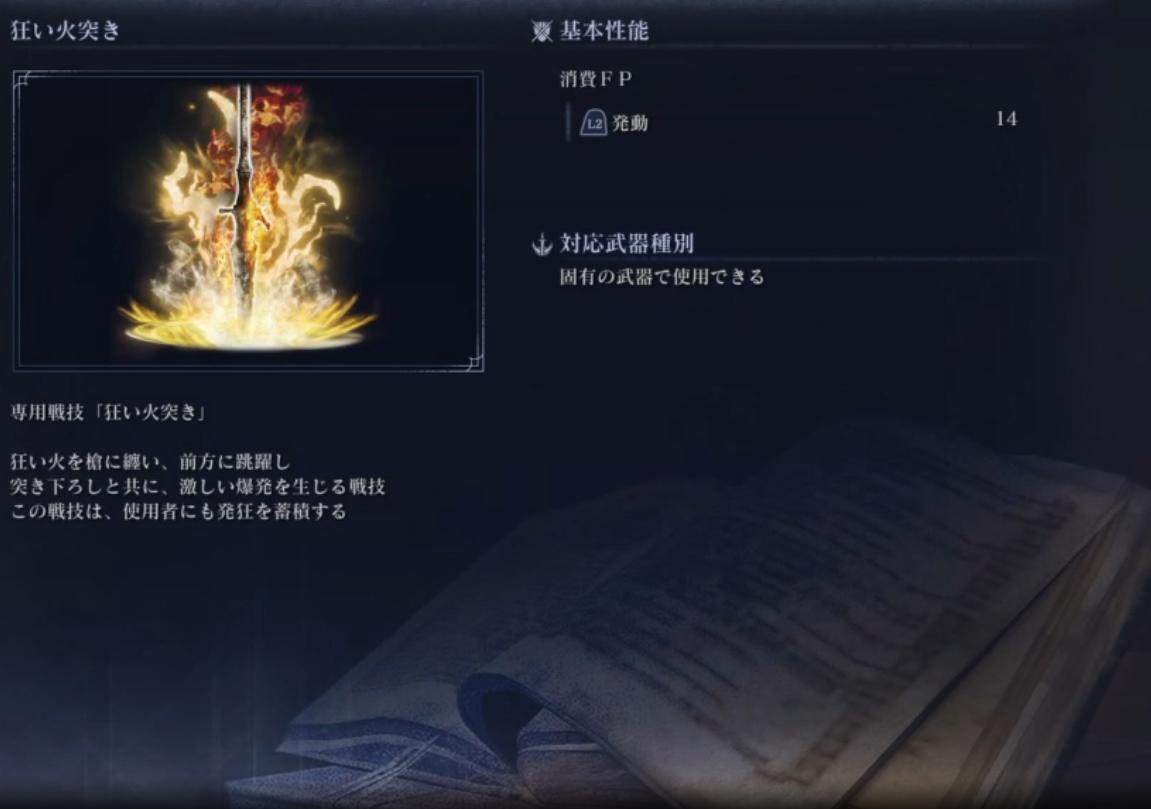 専用戦技は汎用戦技よりも消費FPは多いが威力は強力だったり、消費FPは少なかったとしても連射でき、総合的な消費FPはかなり多くなってしまうものが多い。