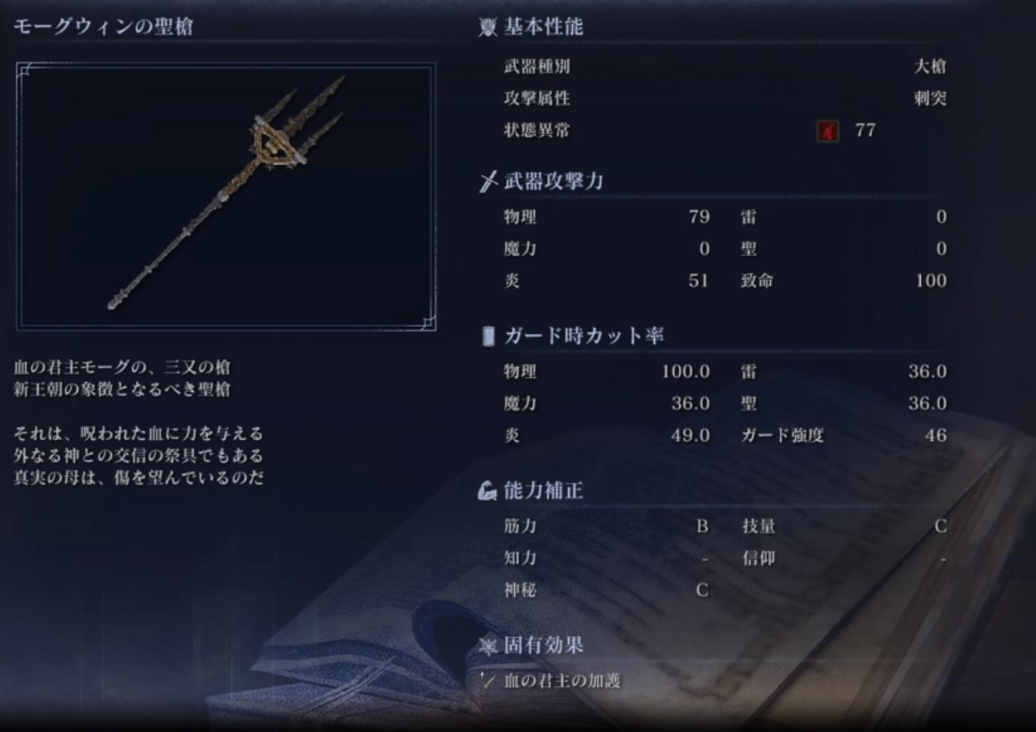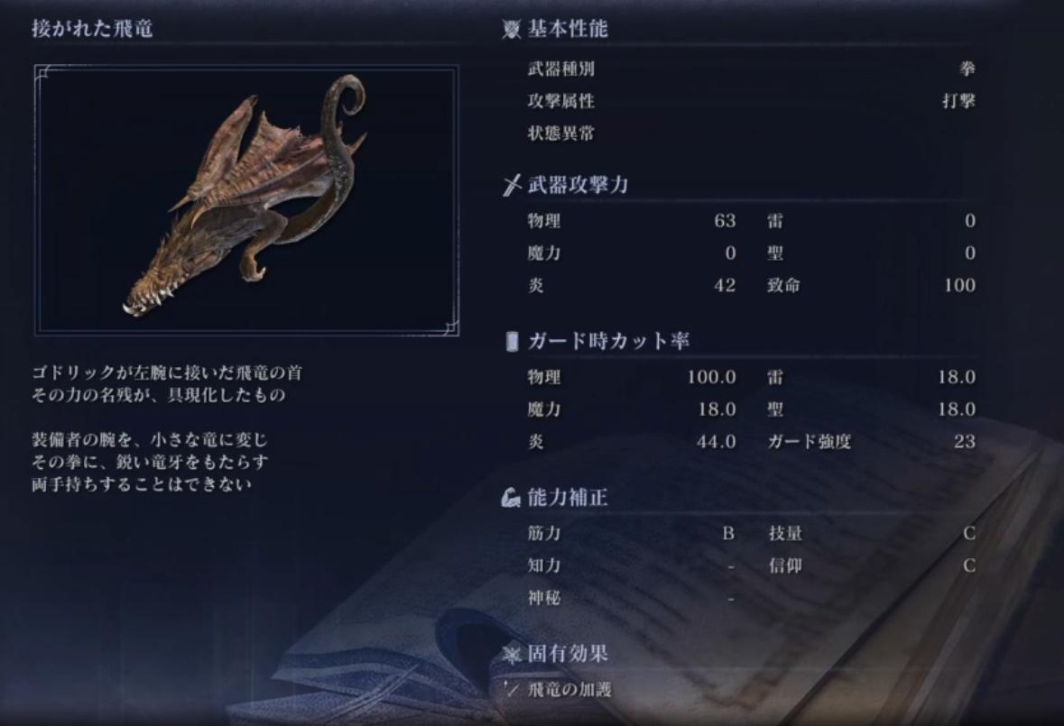 アイテム「竜傷脂」(60秒間、竜に対するダメージ1.3倍)、潜在する力「竜餐の祈祷使用で武器に竜特効付加」や「特効【竜】」(竜に対するダメージ1.2倍)であれば、どんな武器にも竜特攻を付与できるため、効きにくい炎属性と雷属性以外を竜特効するのは有効だ。