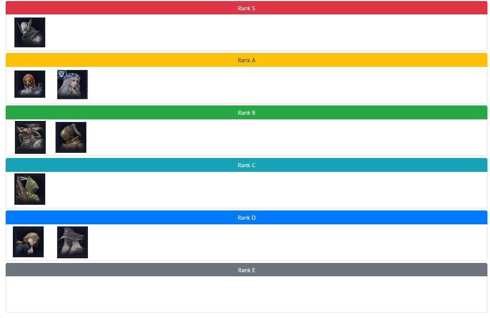 一般的なTier表は、その人自身が使ってどうだったのかという評価なので、ソロプレイの参考にはなるだろう。すでにソロ向けのTier表はたくさんあると思うので、それと差別化する意味でも、このようなランク付けとした。