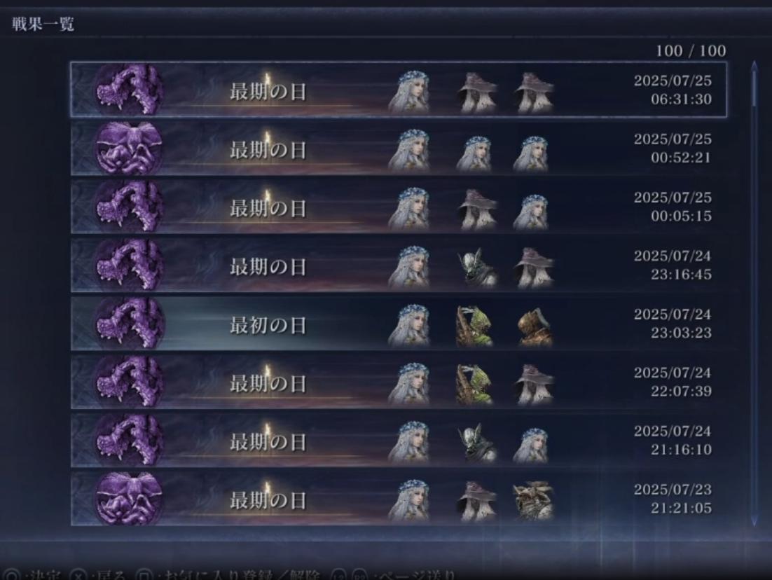 ナイトレインには、戦果一覧という便利機能がある。100戦まで残るので、100戦分埋めて来た。100戦あれば、統計データとしては十分だろう。