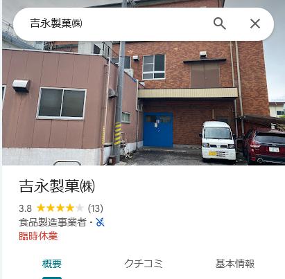 公式サイトによると、取締役社長は「吉永一雄」。火事を受けてか、Googleマップでは臨時休業となっている。昭和31年(1956)に創業したという。