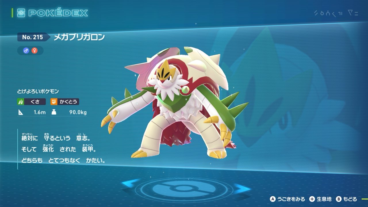 これにより、メガブリガロンの図鑑説明や種族値が判明。強いのか弱いのか考察したい。