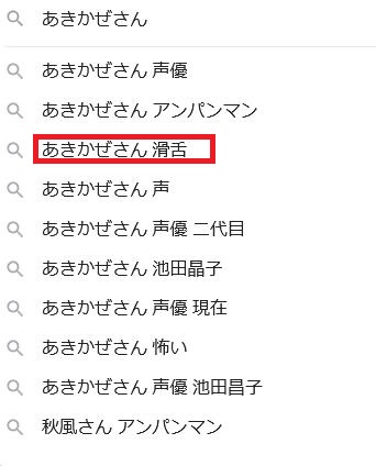 ちなみに、Google検索で「あきかぜさん」と入力すると、サジェストに「滑舌」がヒットする。池田は数年前から滑舌が悪くなったと指摘されており、死因の脳出血の後遺症である可能性がある。