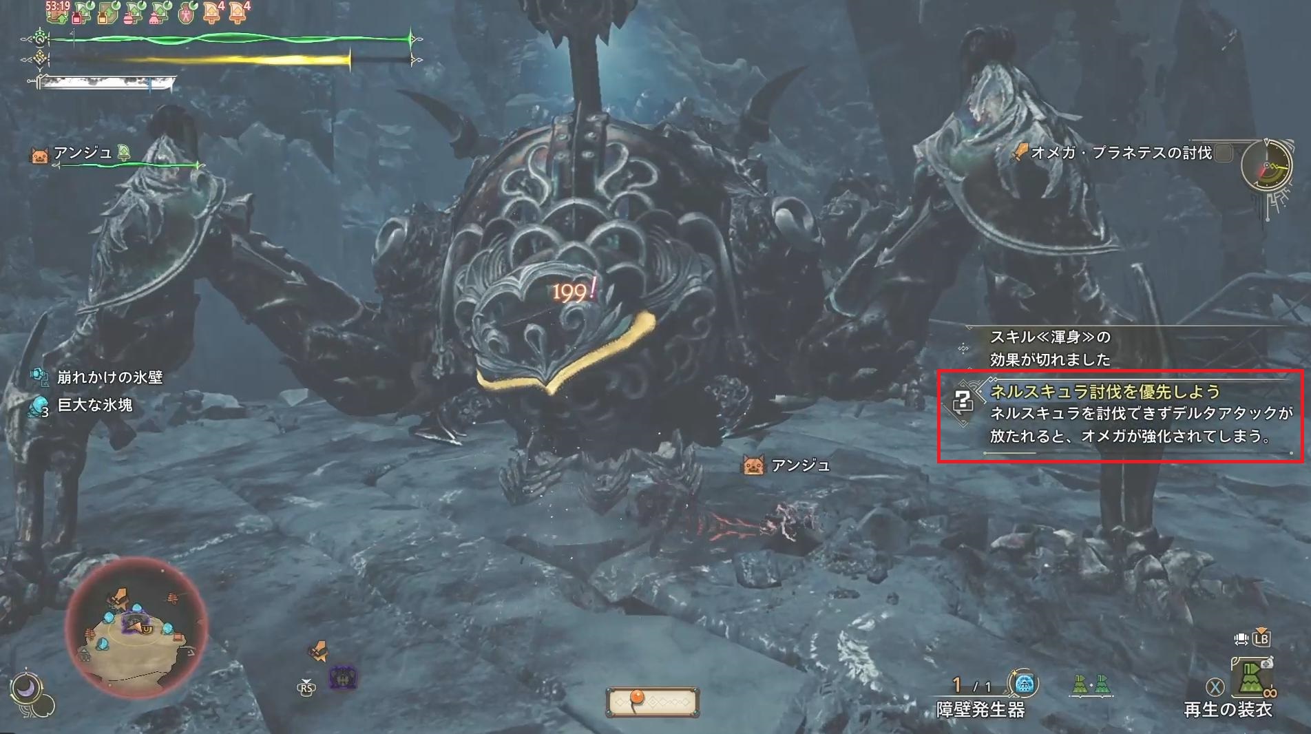 オメガの攻撃力と肉質が強化されたことで、強化前がギリギリ討伐では確実にタイムアップとなる。つまり、強化前以上に火力を出す必要がある。