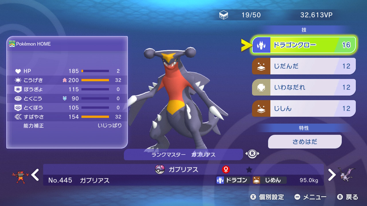 すばやさ:154(32)