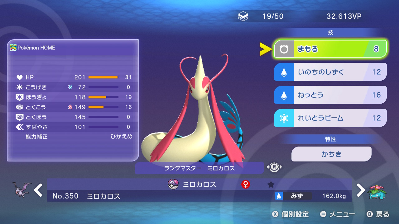 ミロカロス:ミロカロスのこごえるかぜ[3位(54.7%)]とれいとうビーム[4位(48.0%)]はフシギバナに2倍ダメージを与え、威力で勝るれいとうビームが最大打点(威力180)。しかしタイプ不一致なうえ、フシギバナはギガドレインをタイプ一致で使えるため、こちらのほうが有利。