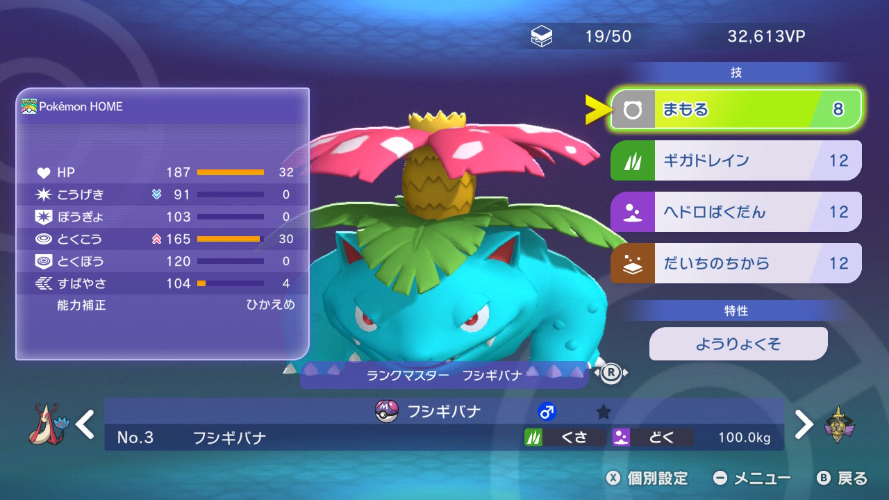 ※メガシンカしないフシギバナに多い「きあいのタスキ(1位.47.4%)&特攻と素早さに32ずつ振った調整を想定。