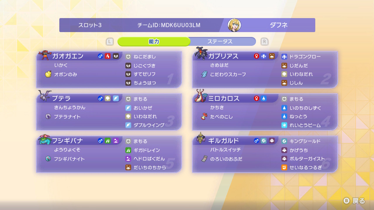 これまでの構築と全くコンセプトが異なるため、パーティも大幅に変更した。