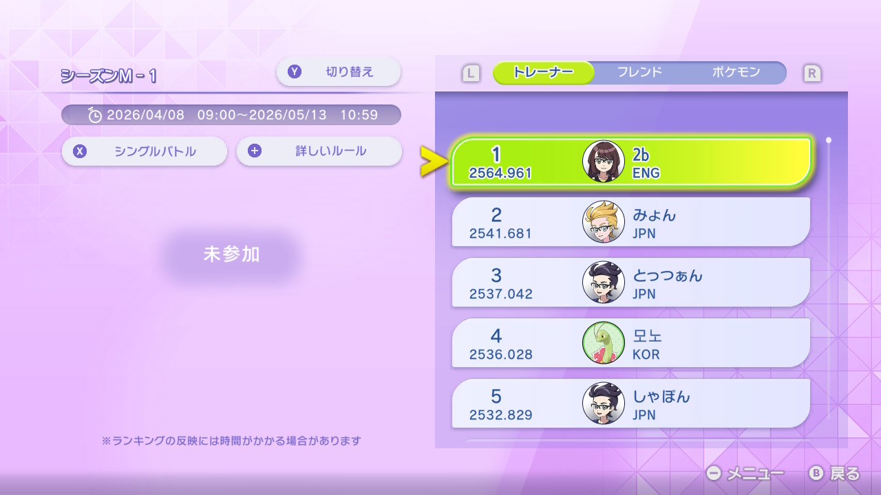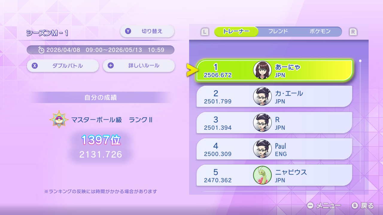 ちなみに筆者だが、「ポケモンチャンピオンズ ダブルレート2250(チャンピオン級)到達最強構築解説」という記事を出しているとおり、レート2250まではほぼ負けなしだった。しかし、ついにレートを溶かす時が来てしまった。