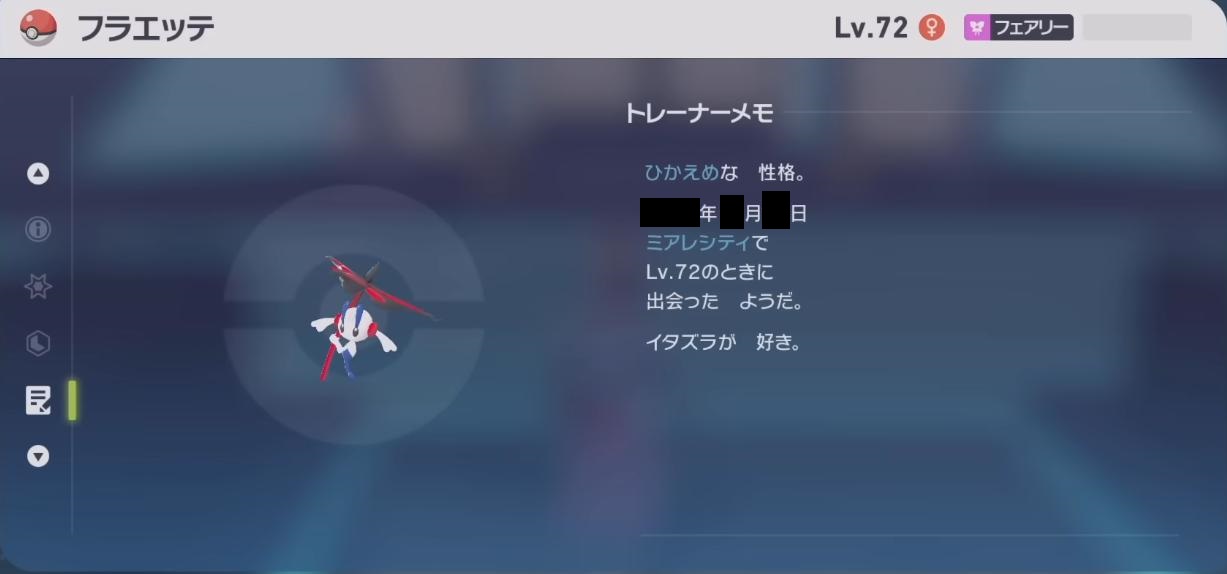 出会った日:プレイヤーがゲットした日になるため、それぞれ異なる(ので該当部分は黒塗り加工)