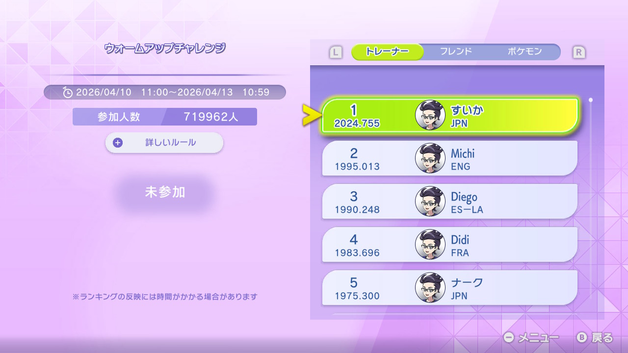 一方、4月10日から13日まで開催されたオンライン大会「ウォームアップチャレンジ」の参加人数は719962人だった。