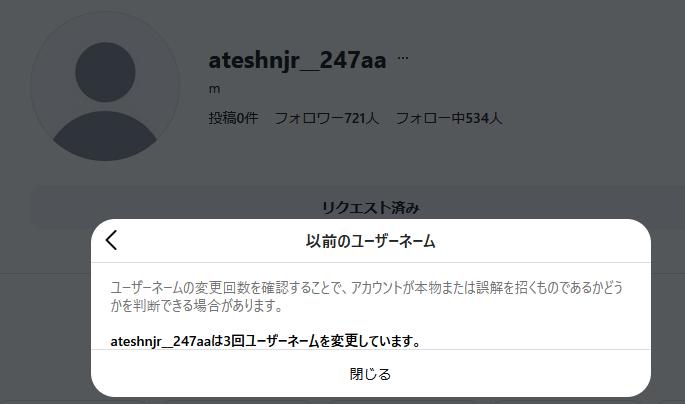 ▼以前のユーザーネームを確認すると「ateshnjr__247aaは3回ユーザーネームを変更しています」となり、確かのようだ。