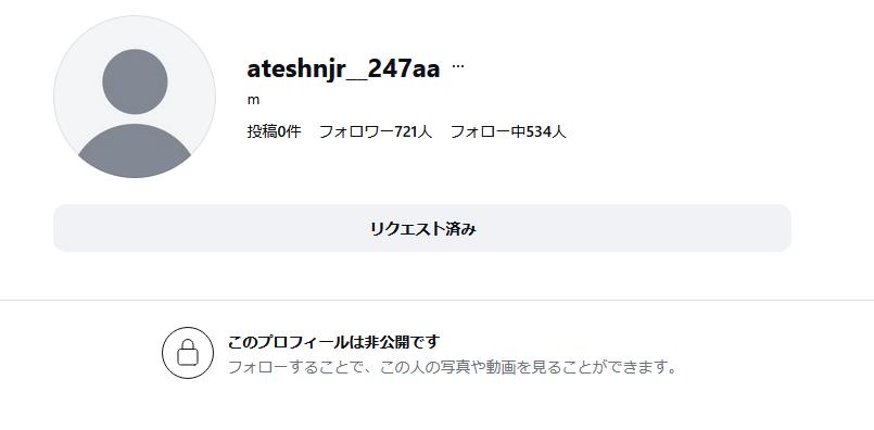 「aaa247」から「ateshnjr__247aa」の間に、投稿を全て削除。しかし、フォロワー700人以上抱えたアカウントを削除するのは惜しいのか、非公開アカウントにしたまま維持している。