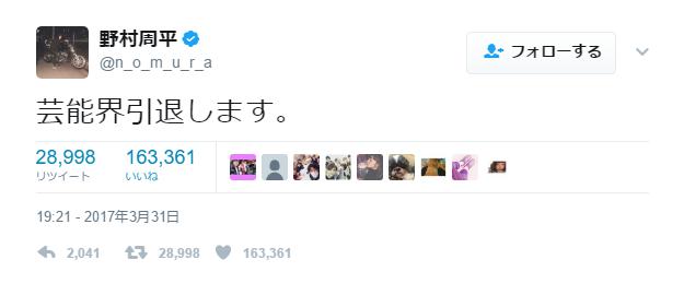 俳優・野村周平「芸能界引退します」との嘘ツイートにタレント・有吉弘行は「ファンを悲しませないで」と訴 […]