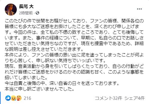 覚醒剤取締法違反の罪で起訴されたDo As Infinityの元メンバー長尾大被告。Do As In […]